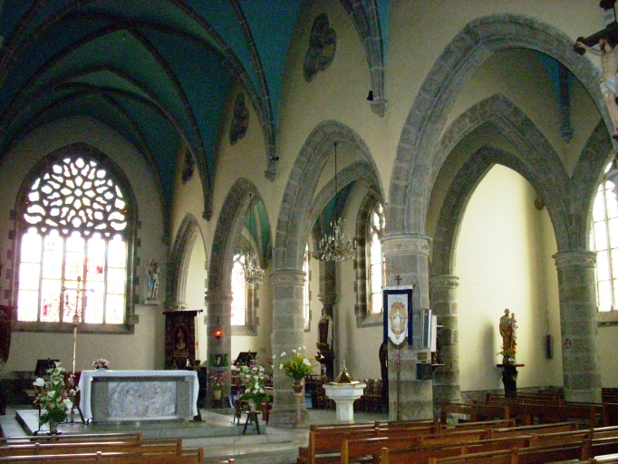 Plouarzel, église paroissiale : vue transversale du choeur et de la chapelle latérale sud depuis le nord-ouestImmatriculation