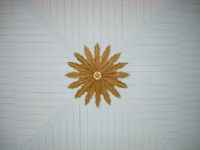 Saint-Méen, église paroissiale : détail du lambris de couvrement à la croisée du transept.Immatriculation