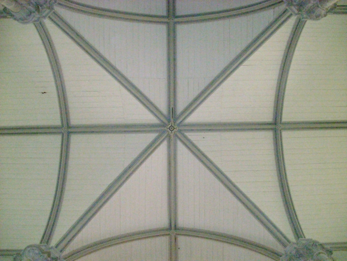Kerlouan, église paroissiale : détail du lambris de couvrement à la croisée du transeptImmatriculation
