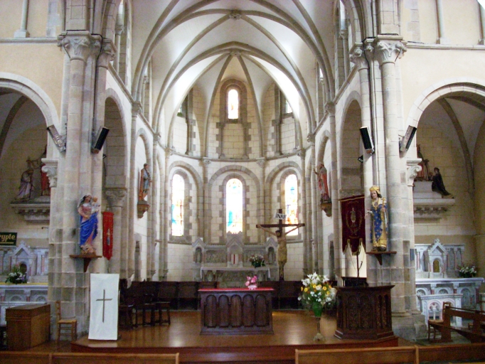 Lanmeur, église paroissiale Saint-Mélar : choeur vu de la croisée du transept, détailImmatriculation