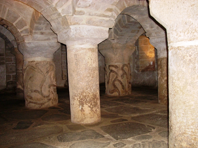 Lanmeur, église paroissiale Saint-Mélar : crypte, vue transversale nord-est, détailImmatriculation