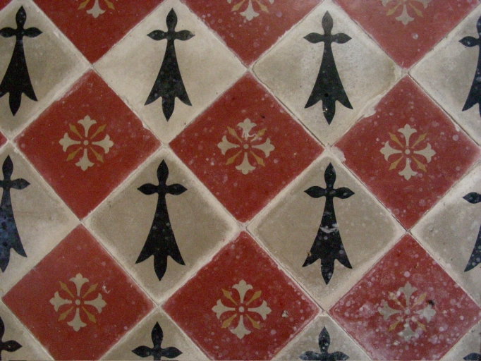 Scrignac, église paroissiale Saint-Pierre : carrelage au sol, détailImmatriculation