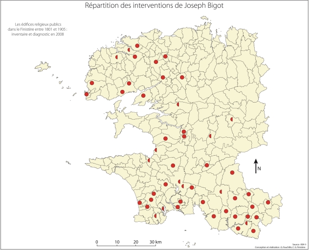 Carte de répartition des interventions de Joseph BigotImmatriculation