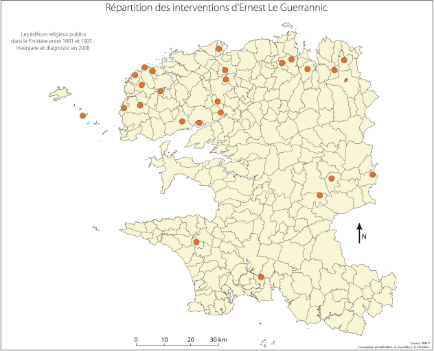 Carte de répartition des interventions d'Ernest Le GuerrannicImmatriculation