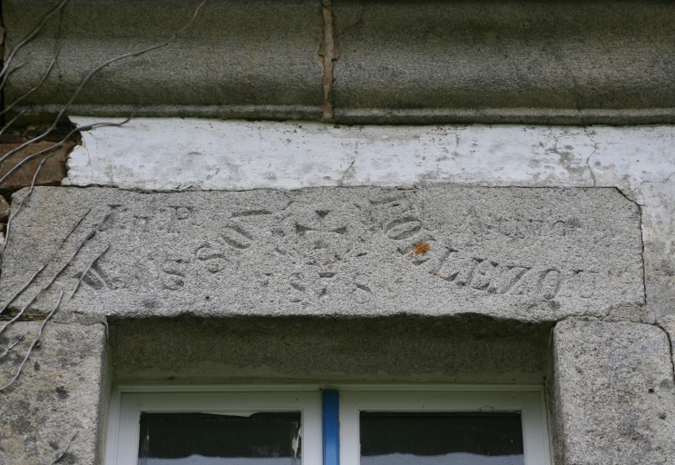Logis 1, étage, linteau de fenêtre (inscription)Immatriculation