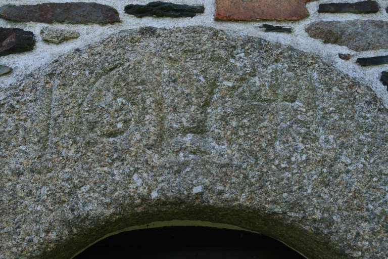 Détail du calice et de la date sculptés sur le linteau de la porte d'entréeImmatriculation