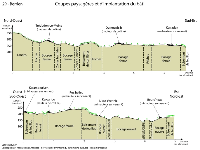 Les maisons, fermes et hameaux de la commune de Berrien,
