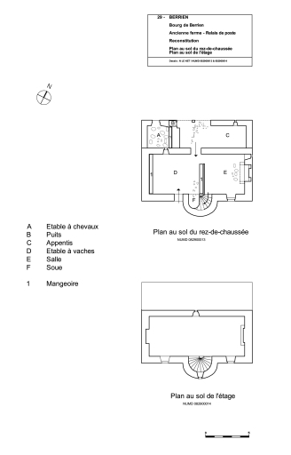 Plan au sol du rez-de-chaussée. Plan au sol de l'étage. Reconstitution avec entrée d'origineImmatriculation