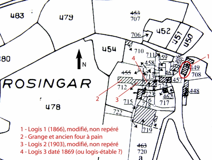 Localisation des éléments repérés (fond : cadastre de 1986, section C 3)Immatriculation