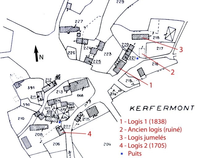 Localisation des éléments repérés (fond : cadastre de 1986, section C 1)Immatriculation