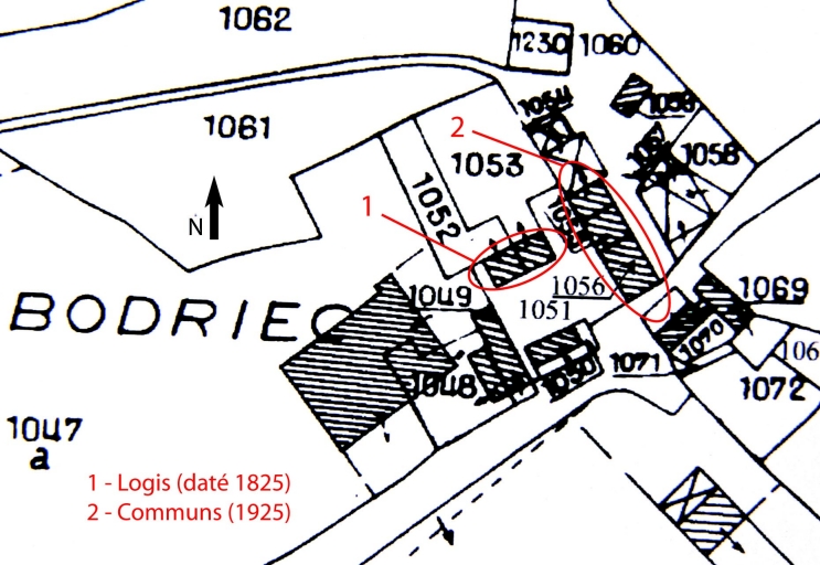 Localisation des éléments repérés (fond : cadastre de 1986, section E 5)Immatriculation