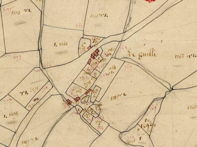 Extrait du cadastre de 1813, section E 4 (A.D. Finistère, 3 P 142)Immatriculation