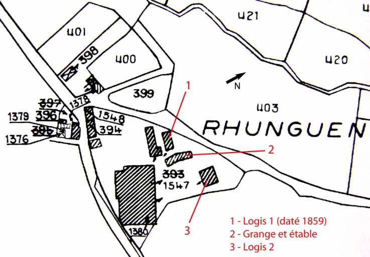 Localisation des éléments repérés (fond : cadastre de 1986, section E 2)Immatriculation