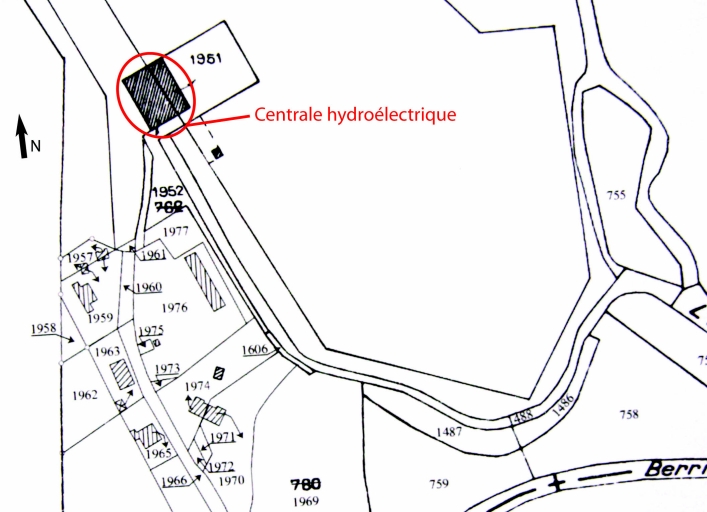 Localisation de l'usine hydroélectrique (fond : cadastre de 1986, section D 3)Immatriculation