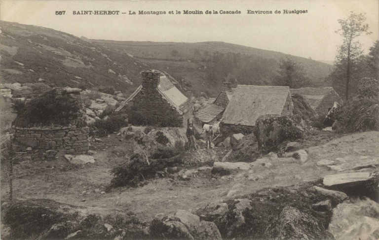Vue générale du site de moulin du Rusquec, carte postale début 20e siècle (A.D. Finistère, 2 Fi 141)Immatriculation