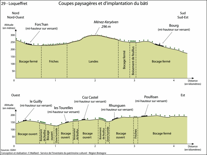 Les maisons, fermes et hameaux de la commune de Loqueffret,