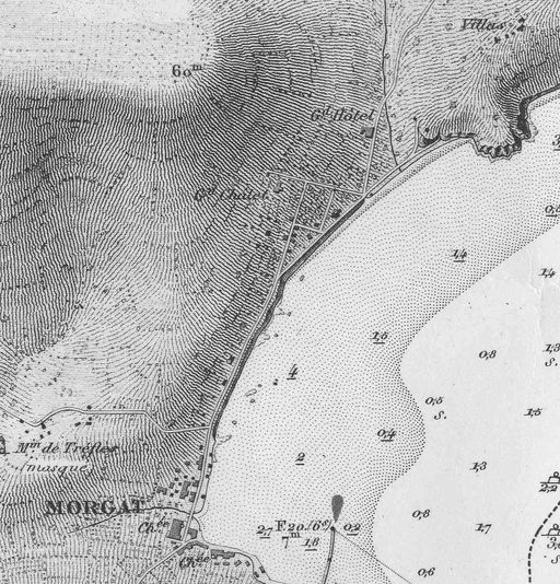 Extrait de 'Environs du Cap de la Chèvre - Anses de Dinant et de Morgat', Paris : Service hydrologique de la Marine, levée en 1900, 1903, 2e édition 1957, n° 5186.
