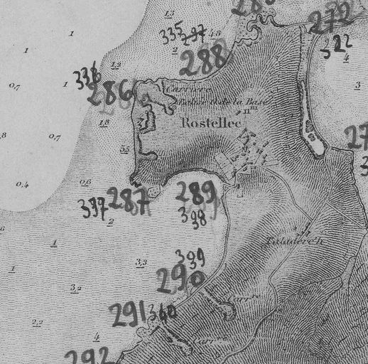 Extrait de 'Partie Ouest de la Rade de Brest', Paris : Service hydrologique de la Marine, levée en 1877, 1918, 4e édition 1948, n° 5497.