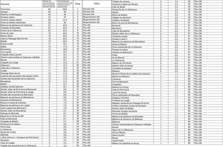 Tableau de Degré de Reconnaissance Patrimoniale (par la population enquêtée en 2007) des éléments cités à Séné (voir annexe 5)Immatriculation