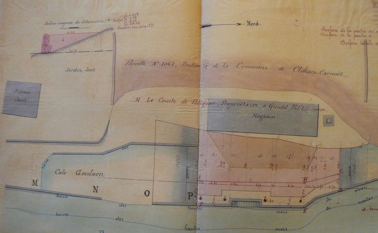 Extrait du plan cadastral montrant le magasin Polignac et le front portuaire du Bas-PoulduImmatriculation