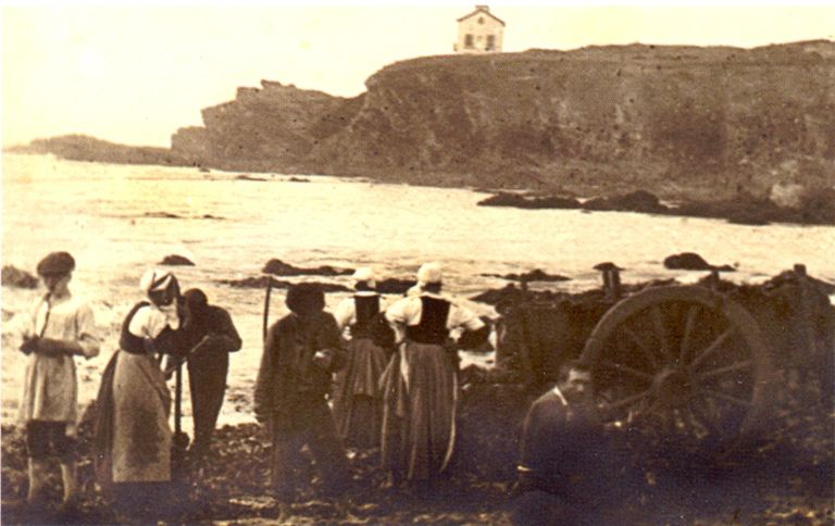 Ramassage du goémon plage des Grands-Sables début 20e siècle, avec villa Les Roches au dernier planImmatriculation
