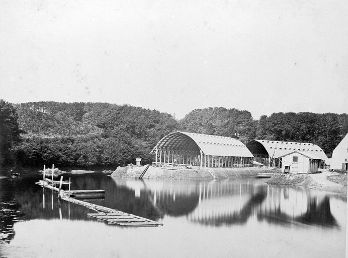 Vue de l'arsenal de Brest en 1880 : ateliers de construction navale au fond de la PenfeldImmatriculation