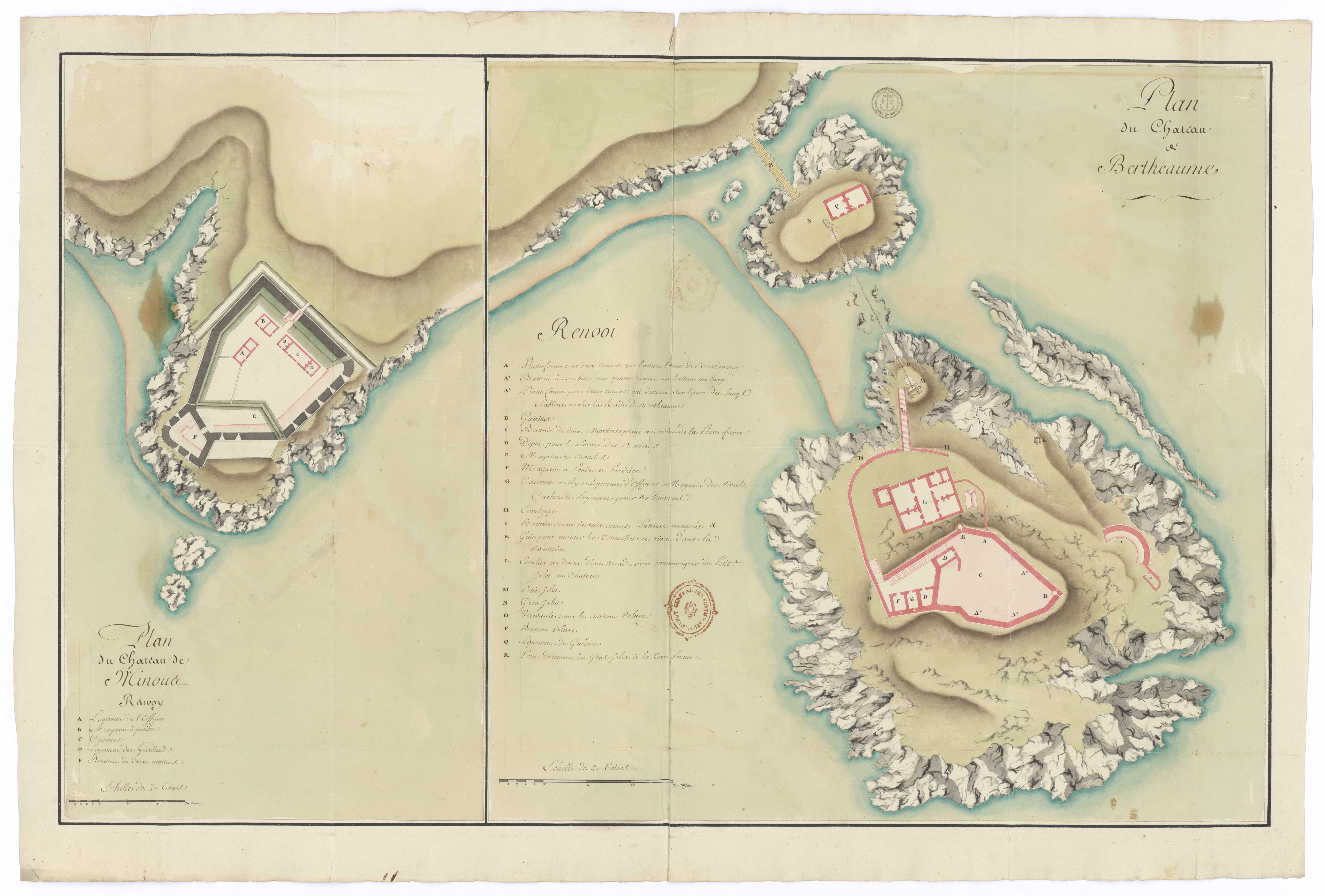 Plans des forts du Minou et de Bertheaume, vers 1770, cachet du dépôt général des fortificationsImmatriculation