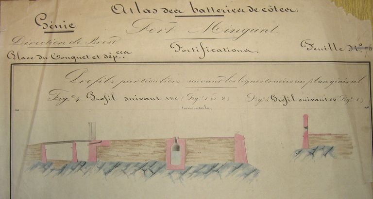 Batteries haute et basse, fort et tour d'artillerie (détruite) dits fort du Mengant (Plouzané),