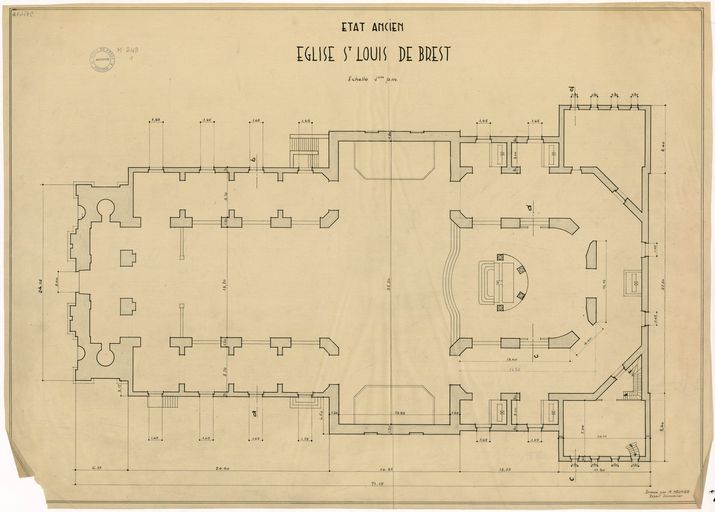 Plan de l'église Saint-Louis à Brest : rez-de-chaussée, 1895 par Meunier, expert immobilierImmatriculation