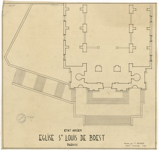 Plan de l'église Saint-Louis à Brest : parvis, 1895 par Meunier, expert immobilierImmatriculation