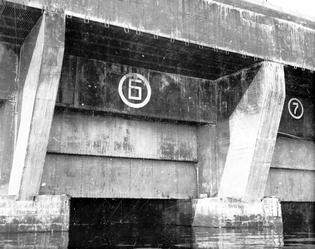 Vue de la base de sous-marins : entrée de l'alvéole n° 6Immatriculation