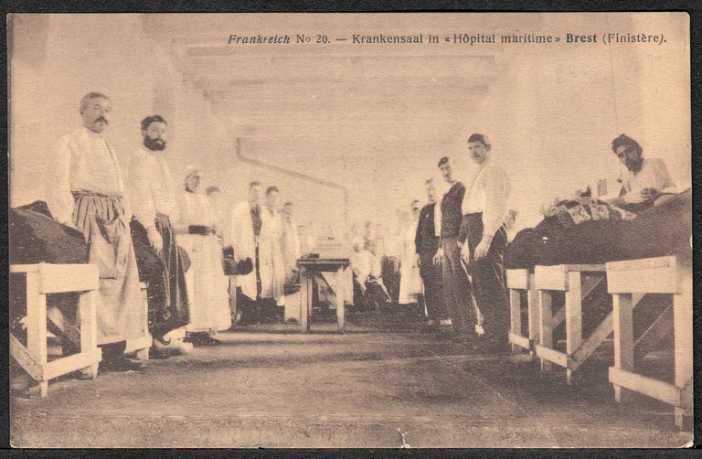 L'hôpital maritime de Brest : salle des malades (Krankensaal). Lit de fortune en boisImmatriculation