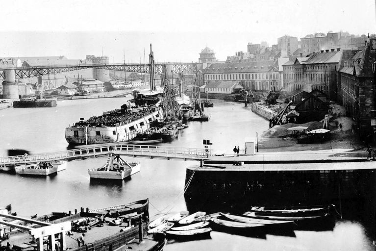 Vue de l'arsenal de Brest vers 1880 : de gauche à droite, le pont tournant et les quais du côté de RecouvranceImmatriculation