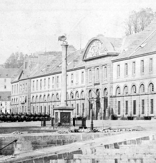 Vue de situation du monument commémoratif devant le Magasin Général dit la Généralité de l'arsenal de Brest, vers 1880Immatriculation