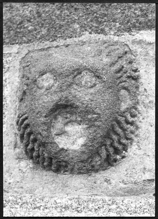 Vue de l'un des deux mascarons à tête de lion de la fontaine en 1971Immatriculation