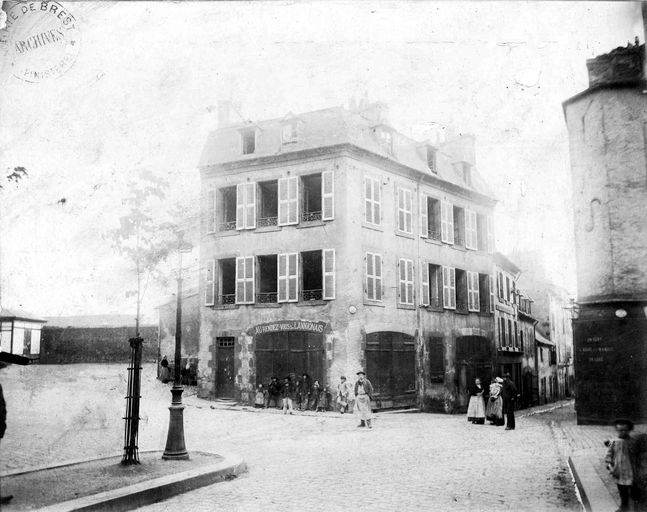 Vue du quartier des Sept-Saints à Brest : immeuble (Aux rendez-vous des Lannionais) à l'angle de la place Sadi-Carnot et la rue Haute des Sept-SaintsImmatriculation