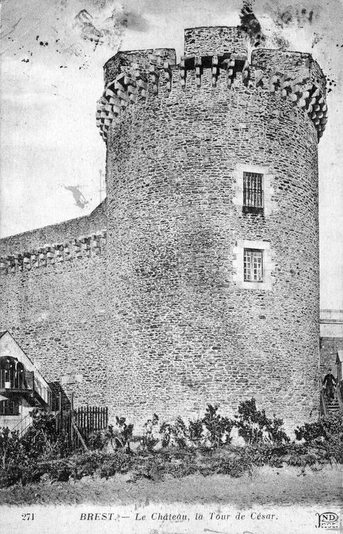 Vue du château de Brest : tour César. Carte PostaleImmatriculation