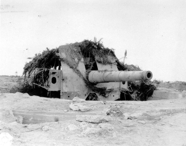 Vue d'un canon en encuvement de la batterie lourde codée M.K.B. Graf Spee (4 canons de 280 mm) (Re 303) (5 / M.A.A. 262)Immatriculation