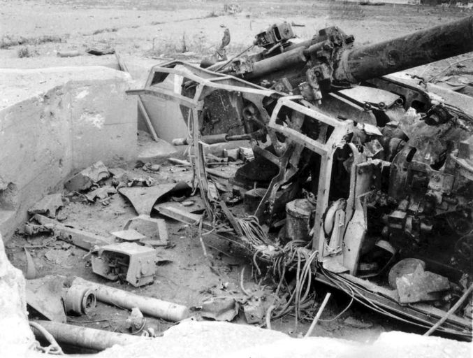 Vue de la festung Brest pendant la bataille de Brest, U.S. Army Signal Corps, septembre 1944 : canon antiaérien de 105 mm hors d'usage, aux environs de BrestImmatriculation