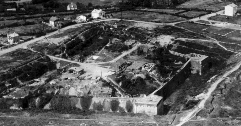 Vue de la festung Brest pendant la bataille de Brest, U.S. Army Signal Corps, septembre 1944 : vue aérienne oblique du fort de GuelmeurImmatriculation