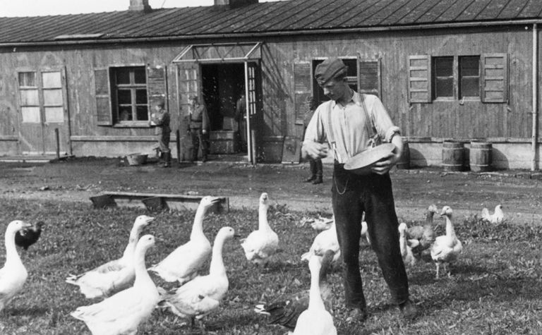 Vue de la vie quotidienne de la garnison de la batterie Graf Spee : oies de la basse-cour, novembre 1941 ? (image de propagande)Immatriculation