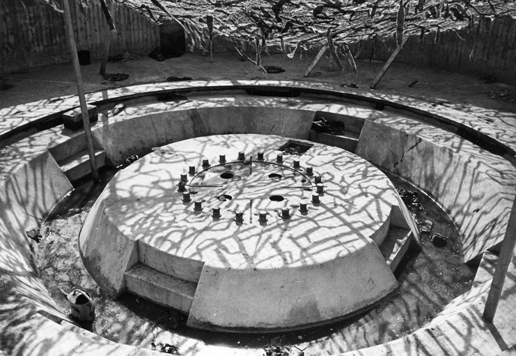 Vue du chantier de la batterie Graf Spee : dissimulé sous des filets de camouflage, l'un des encuvements pour canon de 28 cm, fin 1940 ?Immatriculation