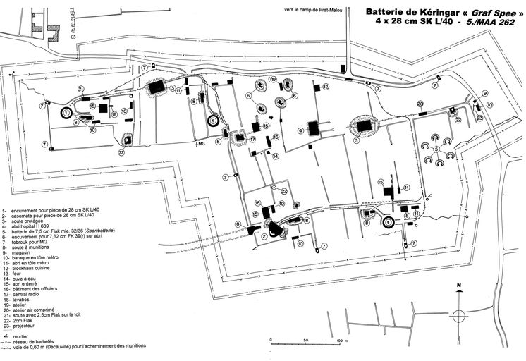 Plan de la batterie Graf Spee (source : Album Mémorial Atlantikwall. Le Mur de l´Atlantique en France 1940-1944, 1995)Immatriculation