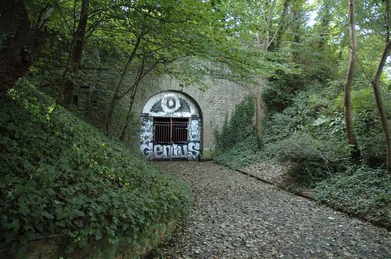 Vue de l'entrée du tunnel d'Heurtebise traversant le front bastionné de l'Harteloire dit Nouvelle enceinte (construite en 1848)Immatriculation