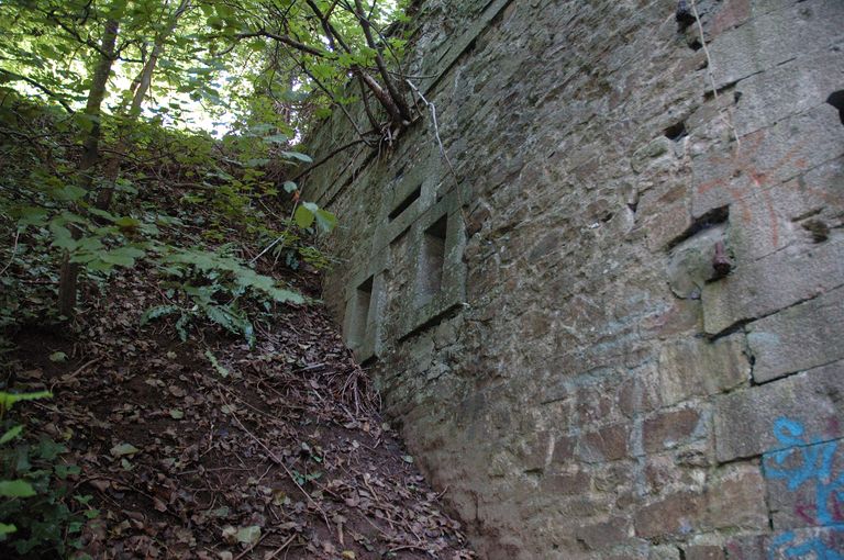 Vue de l'entrée du tunnel d'Heurtebise traversant le front bastionné de l'Harteloire dit Nouvelle enceinte (construite en 1848) : ouvertures du corps de garde (?) situé à gauche de la porteImmatriculation