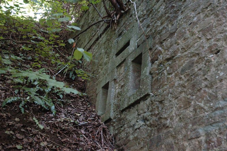 Vue de l'entrée du tunnel d'Heurtebise traversant le front bastionné de l'Harteloire dit Nouvelle enceinte (construite en 1848) : ouvertures du corps de garde (?)Immatriculation