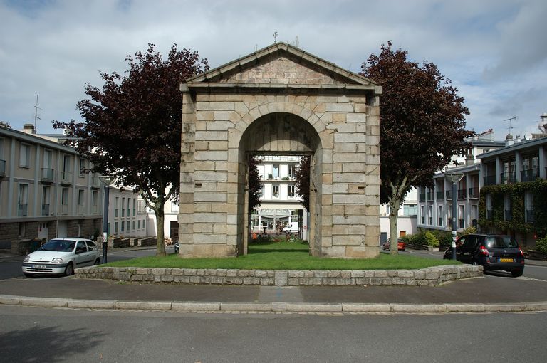 Vue des vestiges de la porte monumentale de la caserne Guépin remontés dans le square Commandant l'Herminier : revers de la porteImmatriculation