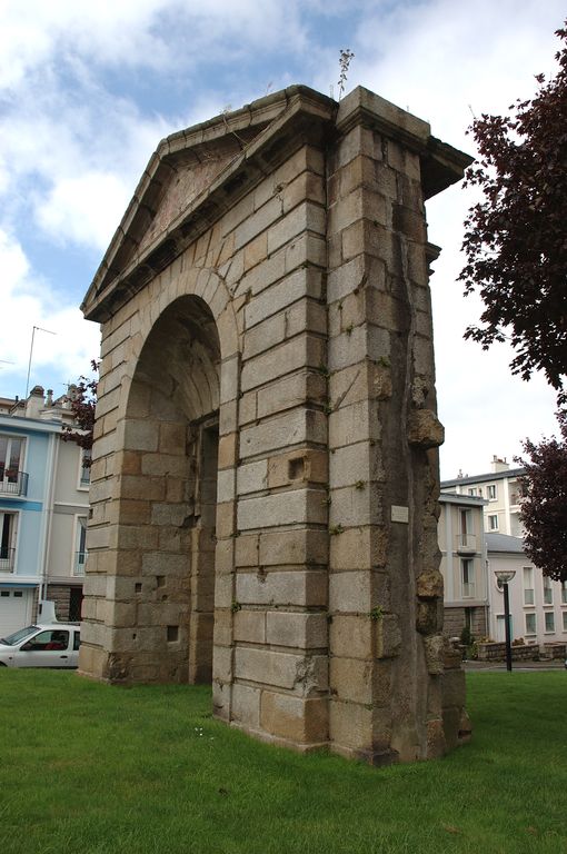 Vue des vestiges de la porte monumentale de la caserne Guépin remontés dans le square Commandant l'Herminier : revers de la porteImmatriculation