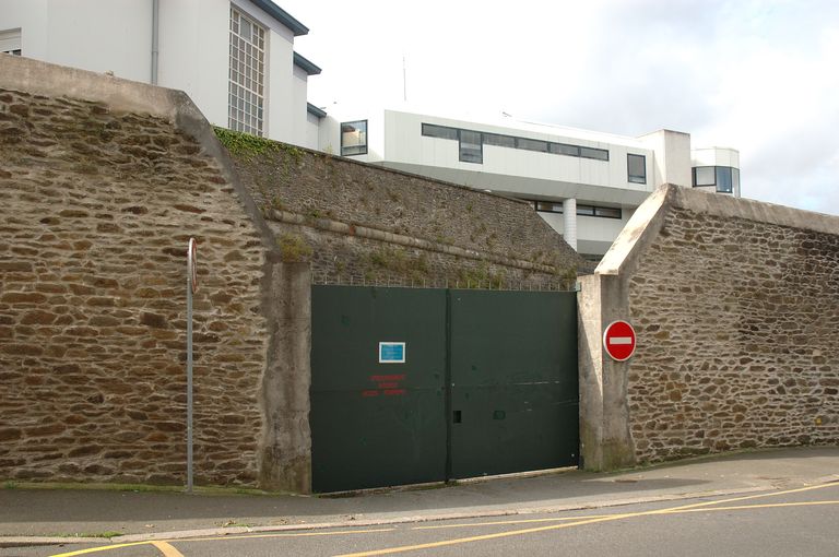 Vue de l'hôpital Clermont-Tonnerre, Service de Santé des Armées : rue Portzmoguer, vestiges des fortifications d'agglomération de l'époque vaubanienne. Bastion Saint-PaulImmatriculation