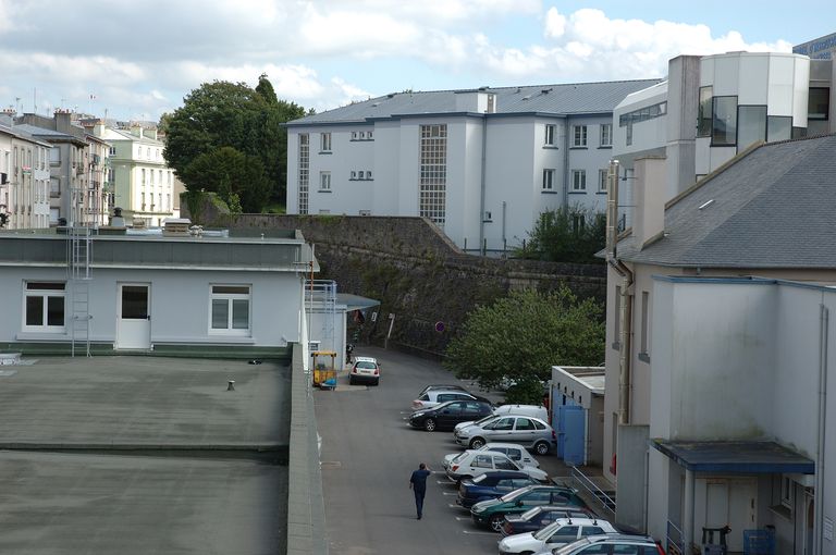 Vue de l'hôpital Clermont-Tonnerre, Service de Santé des Armées : rue Portzmoguer, vestiges des fortifications d'agglomération de l'époque vaubanienne. Bastion Saint-PaulImmatriculation